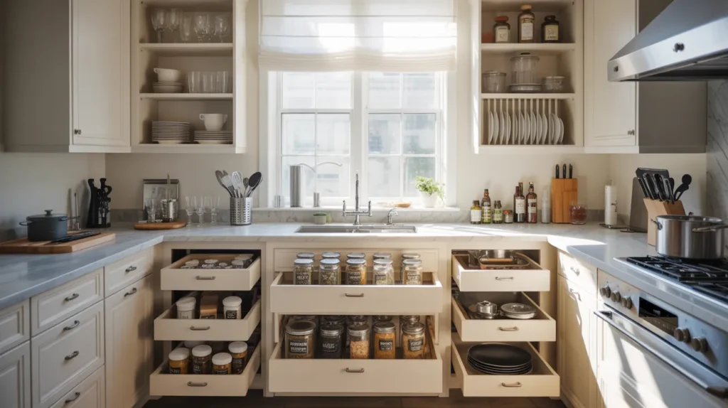Once the clutter is cleared, the next step is to intelligently maximize the storage potential of cabinets and drawers. Visualize sliding open a drawer to reveal neatly arranged knives in a dedicated tray, perfectly stacked Tupperware lids, and color-coded cutting boards that almost glow against the warm wood interior. Simply Education XYZ recommends employing vertical dividers, pull-out trays, and adjustable shelves to make every inch of your storage count. Industry professionals have verified that optimizing vertical space can increase storage capacity by up to 40%, an improvement that translates directly into less chaos and more convenience. Practical users note that well-organized cabinets reduce the frustration of searching for items mid-cooking, allowing meals to be prepared faster and with less stress. The tactile pleasure of a smooth, easy-to-open drawer or the visual serenity of perfectly aligned plates cannot be overstated. By investing in cabinet organization now, you prevent the creeping chaos that slowly erodes efficiency, making timely action a critical move toward a kitchen that works for you, not against you.